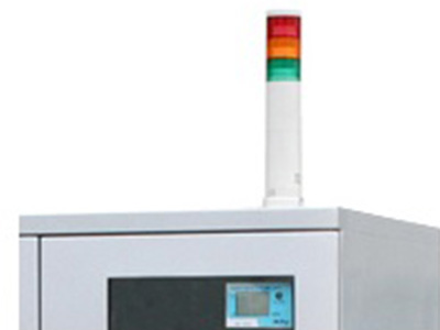 The tower light flashes when humidity goes over the level set using the hygrometer with alarm.